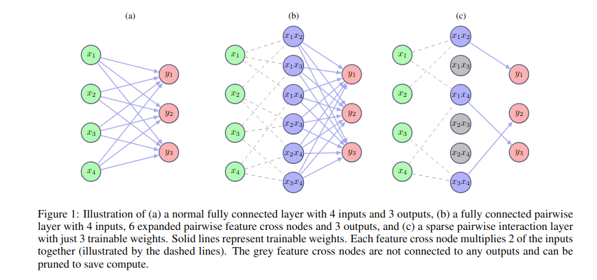 Figure from my second paper, illustrating the architecture innovation. Simple linear matrix multiplication is replaced with an operation that looks at pairs of inputs firing at the same time.
